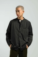 - Collarless shirt with modern cut panel